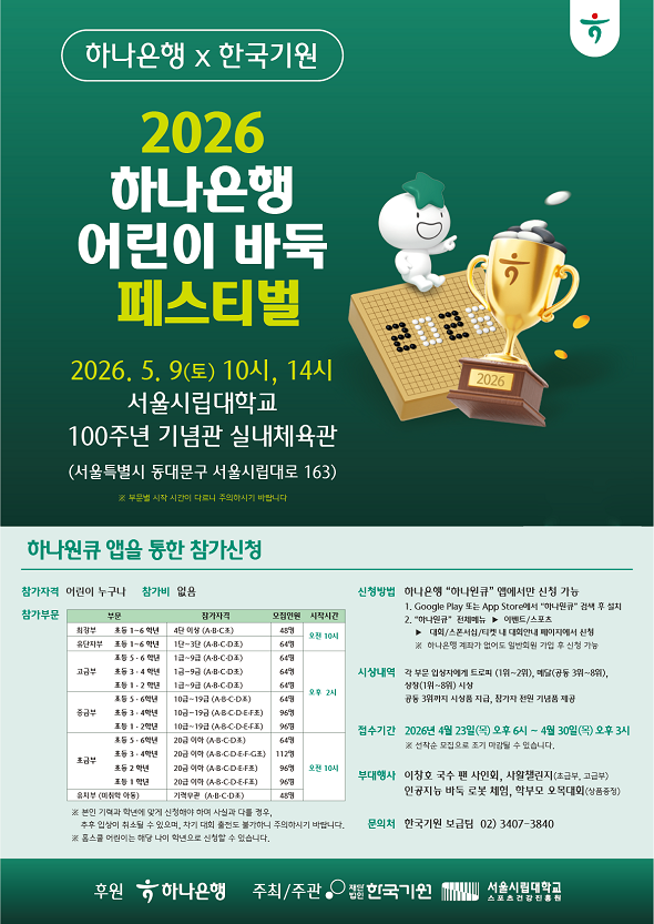 미래 바둑 꿈나무를 위한 ‘2026 하나은행 어린이 바둑 페스티벌’ 개최