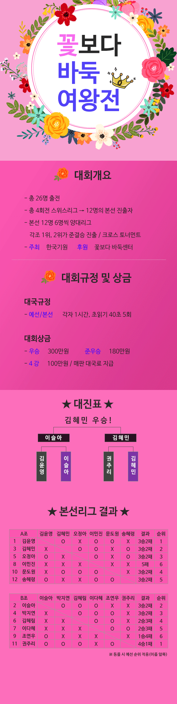 여자바둑대회 꽃보다 바둑 여왕전 탄생!