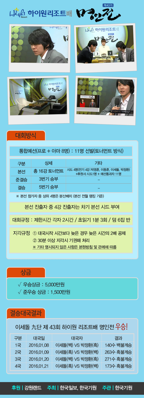 이번 43기 대회를 맞이하여, 또 한 명의 새로운 명인이 탄생할 것인가.