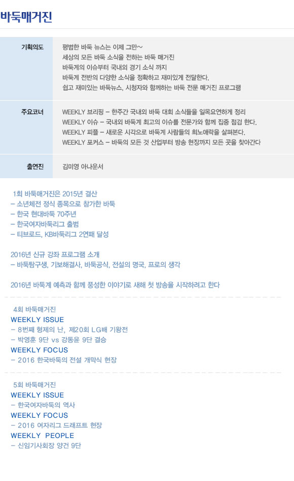 세상의 모든 바둑 소식을 전하는 바둑 매거진!