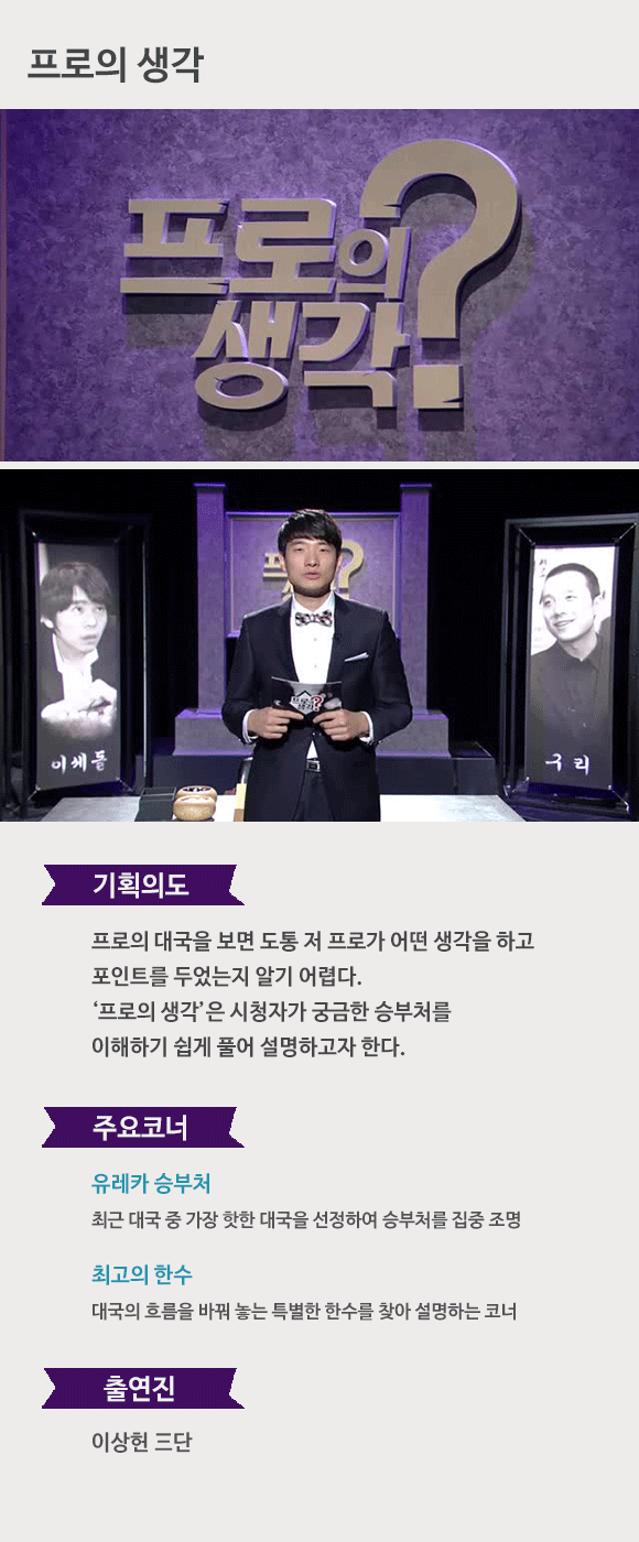 프로기사의 대국의 승부처를 프로의 시선으로 집중 조명 한다