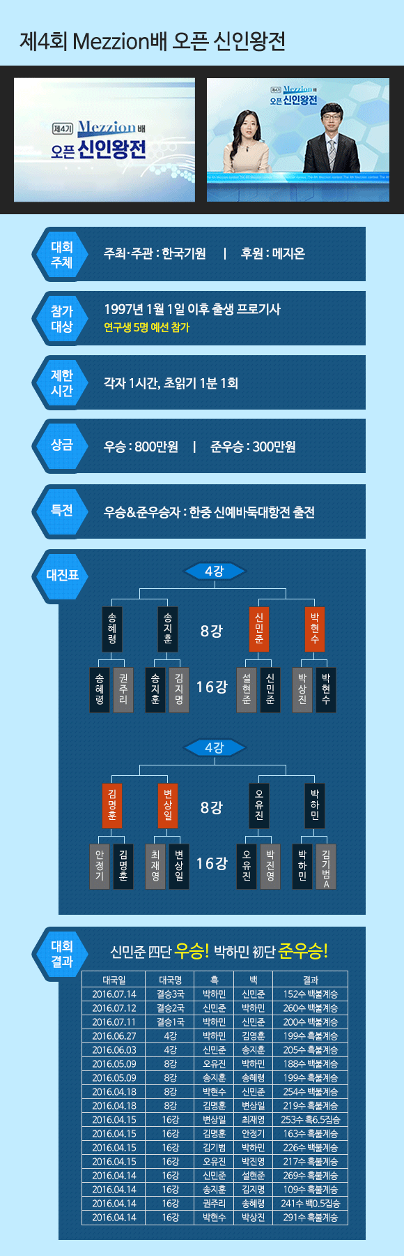 한국기원에서 주최하고 메지온이 후원하는 메지온배 오픈 신인왕전!